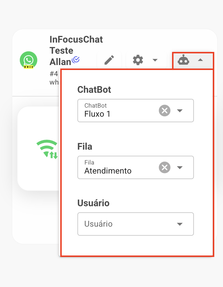 ▪️Chatbot: você pode escolher o Fluxo que usará como padrão para o atendimento desse número. Voce pode atribuir apenas um fluxo para cada número/conexão.