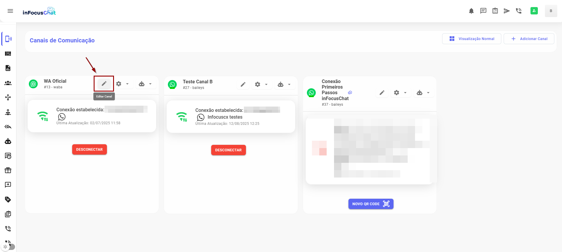 Para conectar um novo canal no inFocusChat, basta seguir as etapas descritas: