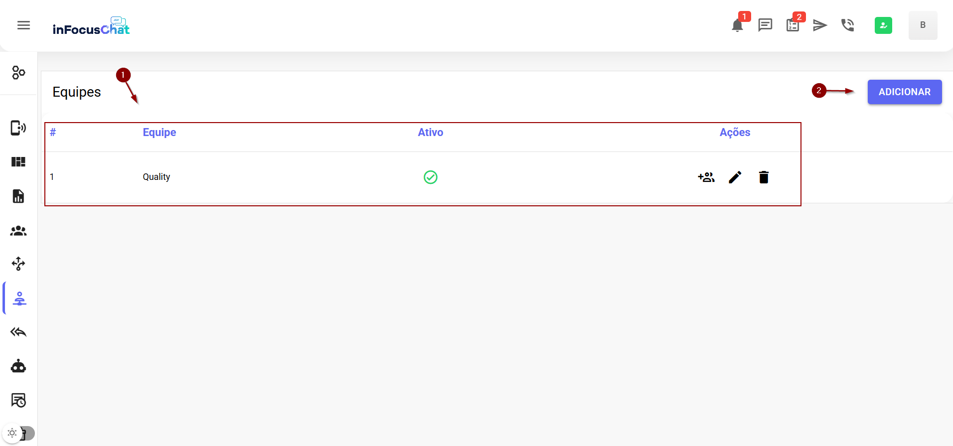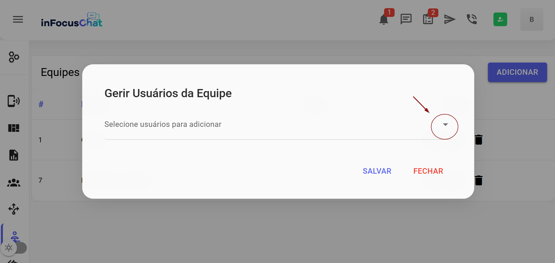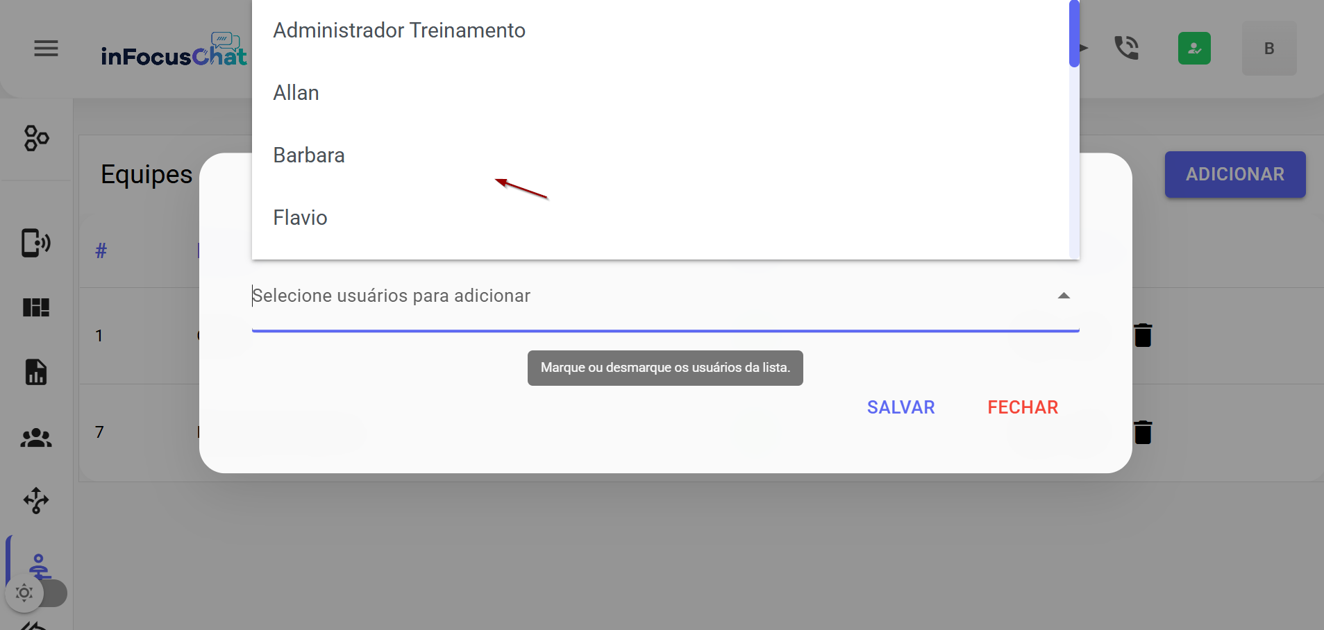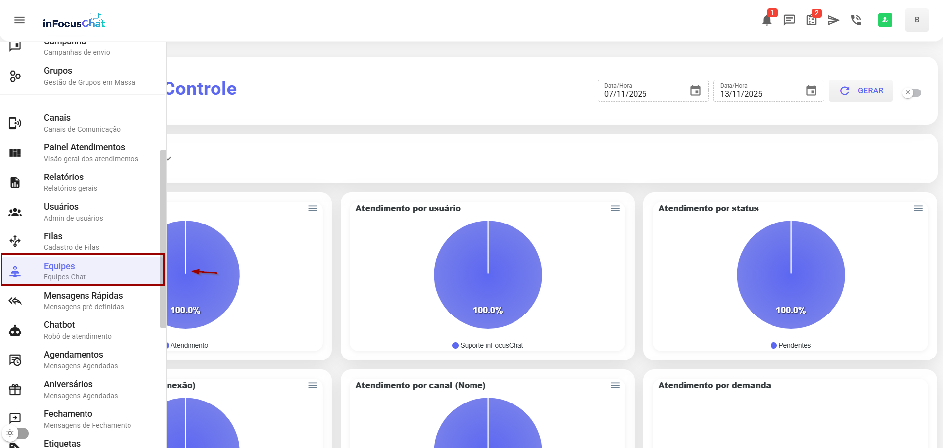 Menu Equipes